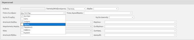 Εισαγωγή πλάνου συνεδριών. Ημέρες τις εβδομάδας στις οποίες ο ασθενής θα πραγματοποιεί αιμοκαθάρσεις
