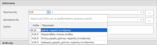Σημείωση: Η διάγνωση (ICD) μπορεί να αναζητηθεί είτε με το κωδικό είτε με τη περιγραφή.