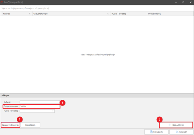 - Αναζήτηση Ασθενή