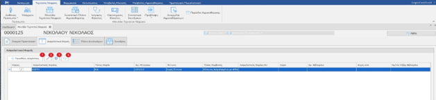 Σε αυτή την καρτέλα εμφανίζονται οι Ασφαλιστικοί Φορείς που εμπλέκονται στο περιστατικό. Από προεπιλογή μας φέρνει τον κύριο φορέα από τα στοιχεία του ασθενή. Σας δίνετε η δυνατότητα Προσθήκης(1), Επεξεργασίας(2), Διαγραφής(3) και Ενημέρωσης(4) από την καρτέλα του Ασθενή.