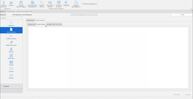 - Καρτέλα Ιστορικού: Καταχωρούμε στοιχεία του Ιστορικού του ασθενή.